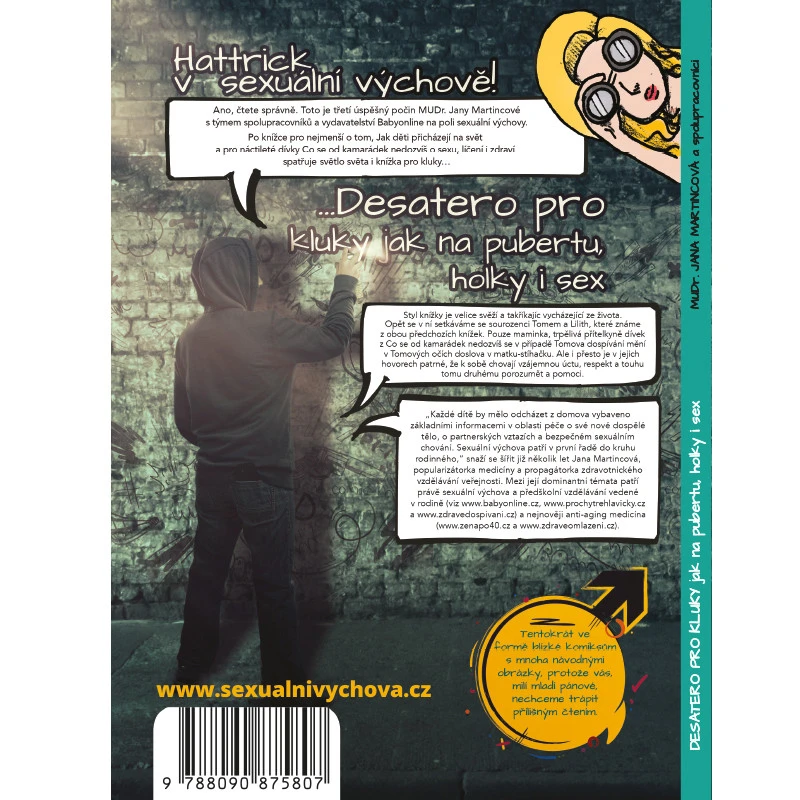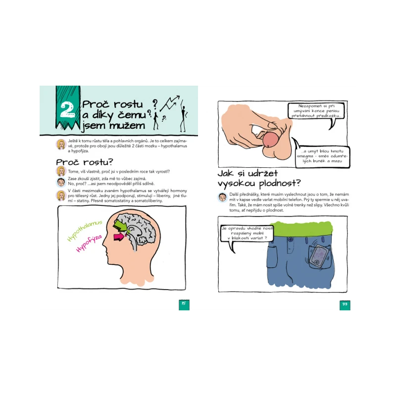 Opět záživně podaná sexuální výchova. Po knížkách pro nejmenší a dospívající dívky vychází v aktualizovaném novém vydání i pro kluky. Tentokrát ve formě blízké komiksům s mnoha návodnými obrázky, protože vás, milí mladí pánové, nechceme trápit přílišným čtením.