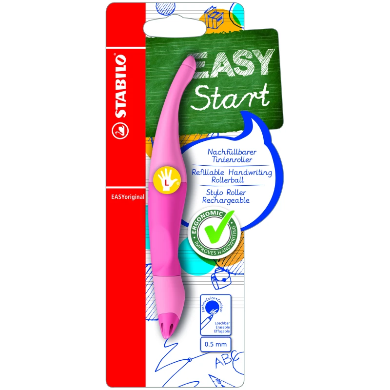 Pero STABILO EASYoriginal je designováno pro nácvik a udržení správného úchopu. Úchopová zóna pro umístění palce a ukazováčku je z neklouzavého materiálu. Pero podporuje přirozené držení ruky, její přesné vedení, psaní bez křečí v ruce.