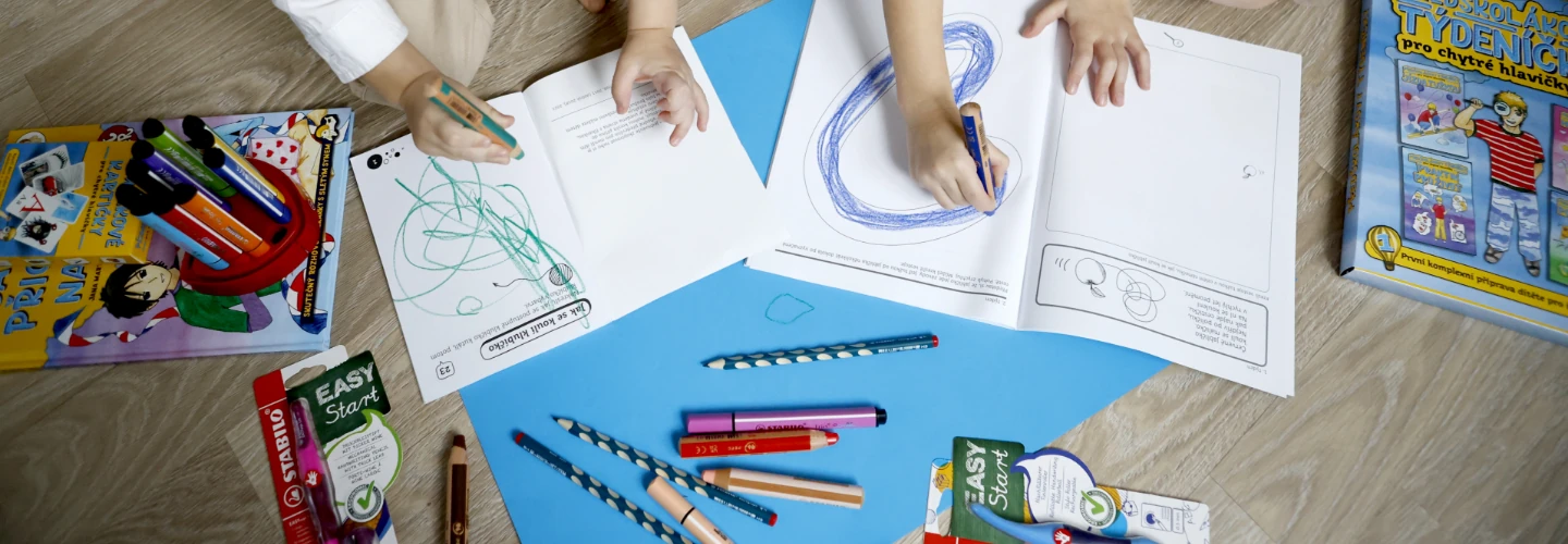 Balíček obsahuje: jedinečnou ucelenou předškolní přípravu Předškolákovy týdeníčky pro chytré hlavičky, abecední karty Písmenkové kartičky, sexuální výchovu pro nejmenší Jak děti přicházejí na svět, Ergotužka se zářezy 3 ks v barvě petrolejové nebo zelené podle aktuální dostupnosti, Ergonomické pastelky STABILO 12 ks, Lepidlo Snopake, Nůžky K-I-N, Ořezávátko Easy sharpener, Ergotužka STABILO Easyergo 3.15, Náhradní tuhy STABILO EASYergo 3.15.
