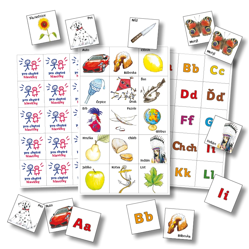 112 ručně malovaných karet naučí předškolní děti slyšet hlásky, slabikovat a poznávat písmena! Děti od 1 roku poznávat obrázky, se kterými si rozšíří svou slovní zásobu. Usnadněte to svému dítěti! Pro rozvoj slovní zásoby i k přípravě do školy.
