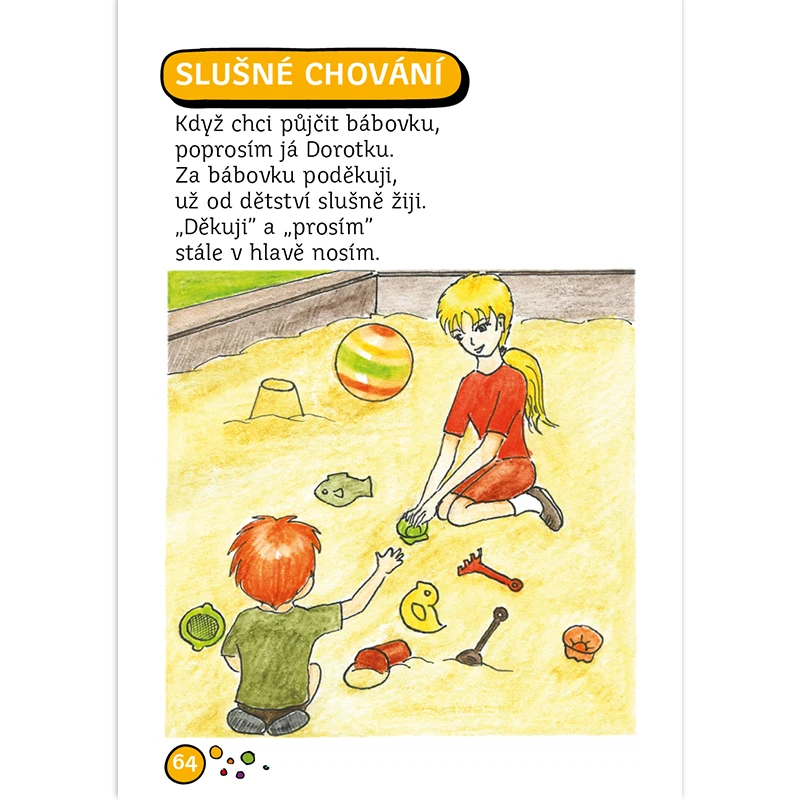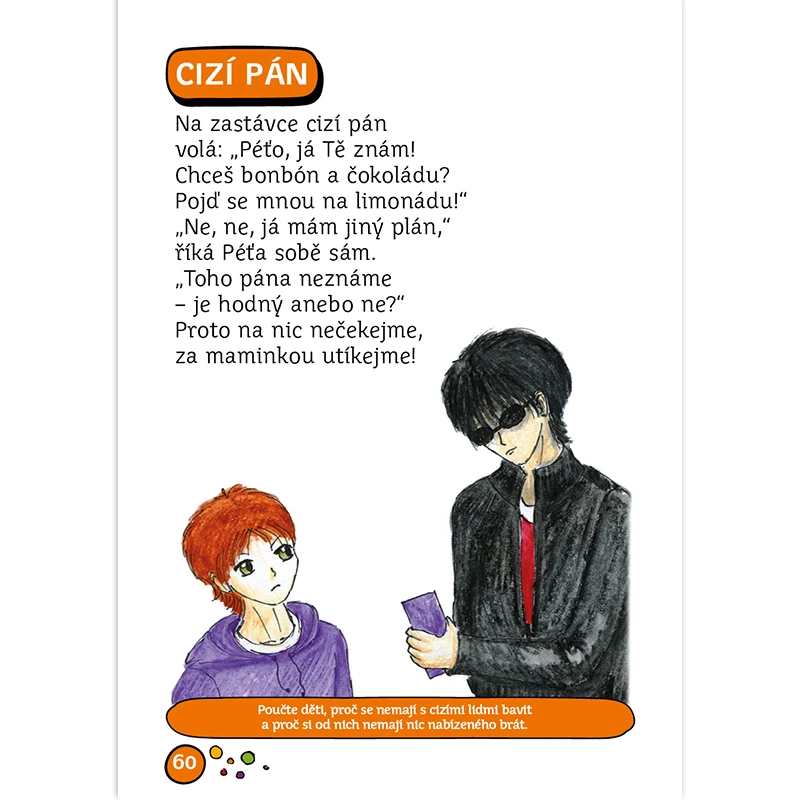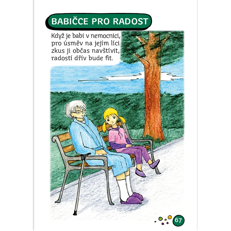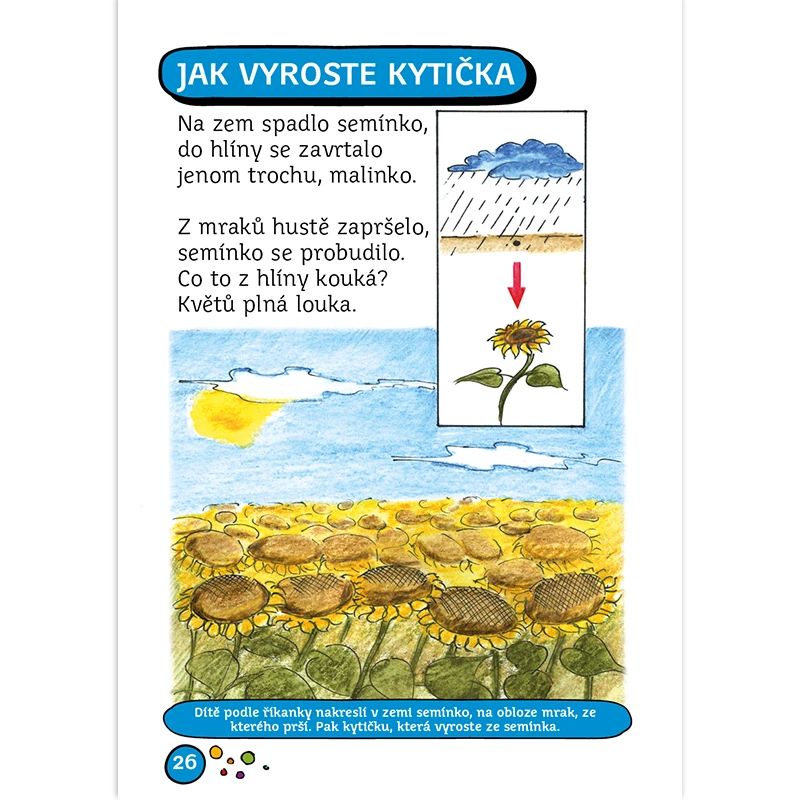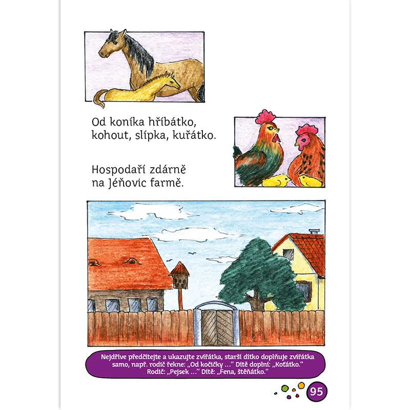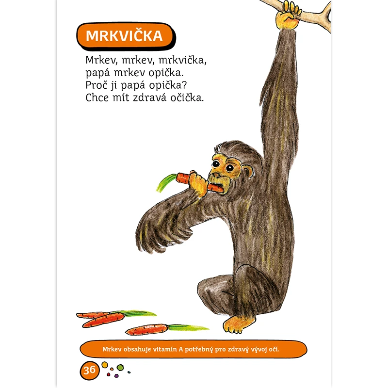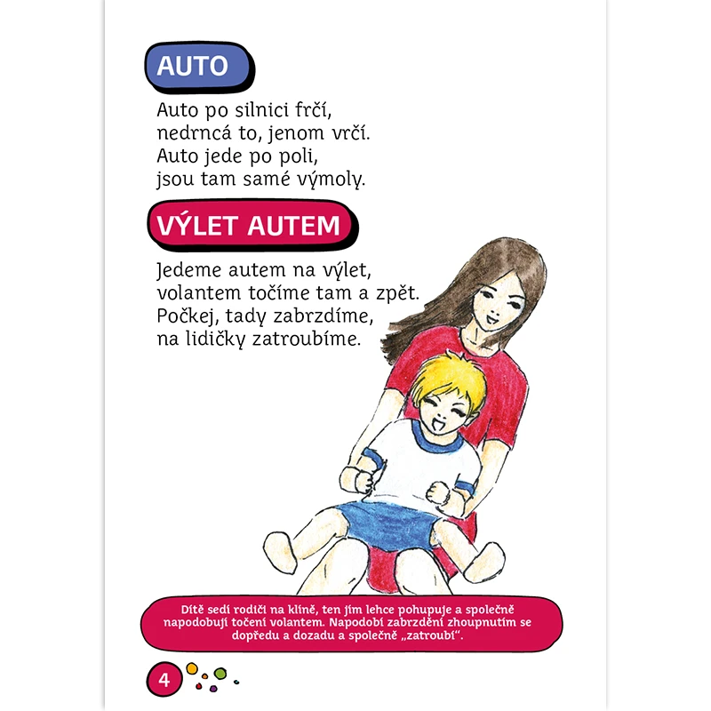 Říkanky jsou zcela nové a neotřelé. Jednoduché, snadno zapamatovatelné. I je u každé z nich návod, jak dítě u říkanky zaujmout pohybově. Navíc jsou poučné a vedou dítě ke správným řešením běžných situací. Kniha je moc pěkně ilustrovaná a jsou k ní přiloženy pexesové karty.