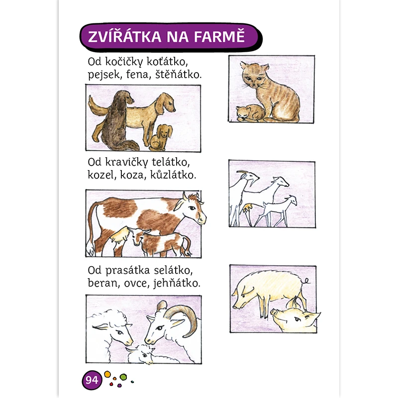 Kniha obsahuje krátké zapamatovatelné říkanky.Vnučce se líbí.Doporučuji..
