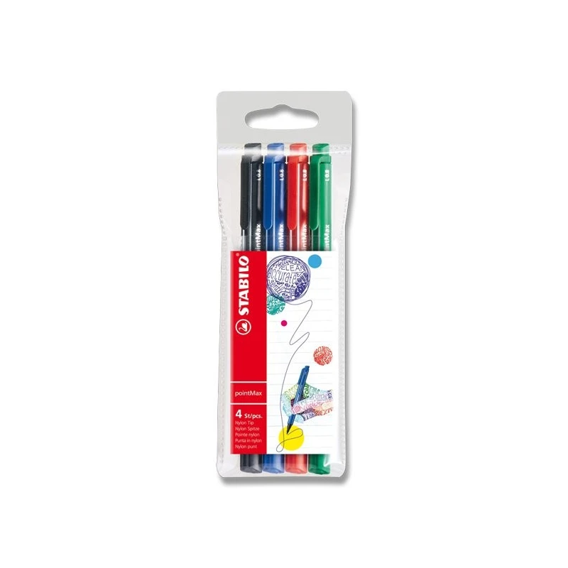 STABILO pointMax disponuje praktickým klipem a vydrží až 24 hodin bez víčka, aniž by vyschnul. STABILO pointMax má jedinečný robustní a odolný hrot z nylonu, který vytvoří konzistentní stopu šíře "M" (0,8 mm). Je ideální pro každodenní psaní či kreslení, ať už píšete dopis, rychlé poznámky nebo rýsujete, šíře 0,8 mm zaručí efektivitu, jemnost a viditelnost.