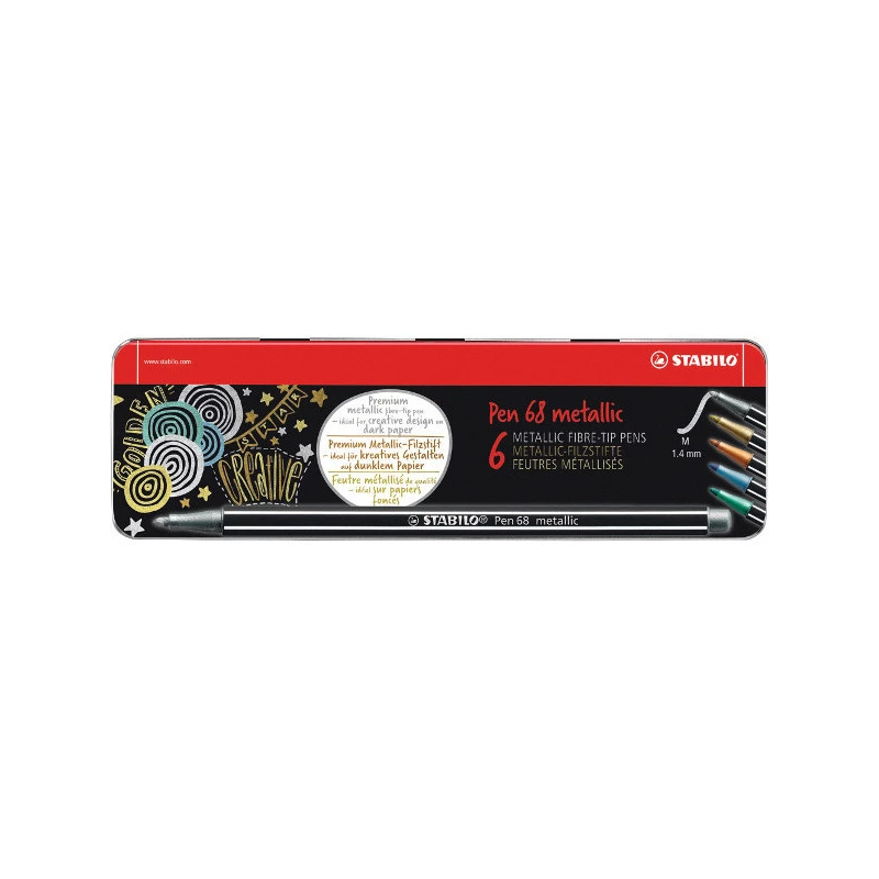 Sada 6 ks s 5 krásnými metalickými barvami STABILO Pen 68 metallic s kovovými odlesky, které tvé tvoření posunou na další úroveň.